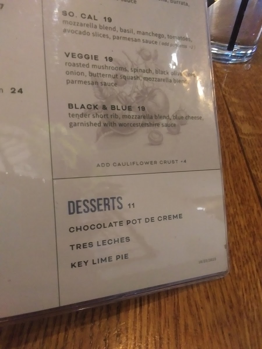 Fire roasted in our brick oven and topped with red wine sauce. Consuming raw or undercooked meats, poultry, seafood, shellfish, or eggs may increase your risk of foodborne illness.